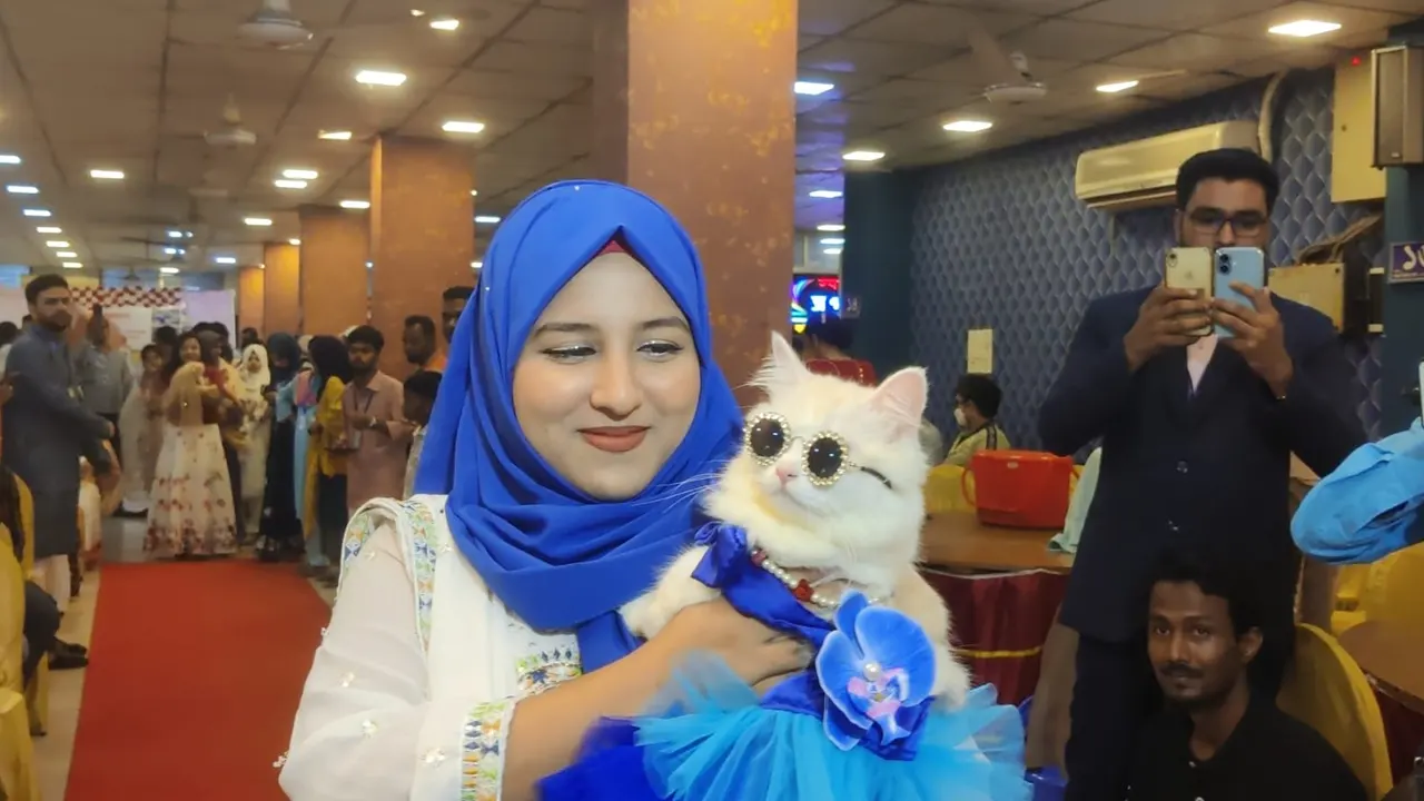 চশমা পরে লালগালিচায় বিড়ালের ‘ক্যাটওয়াক’