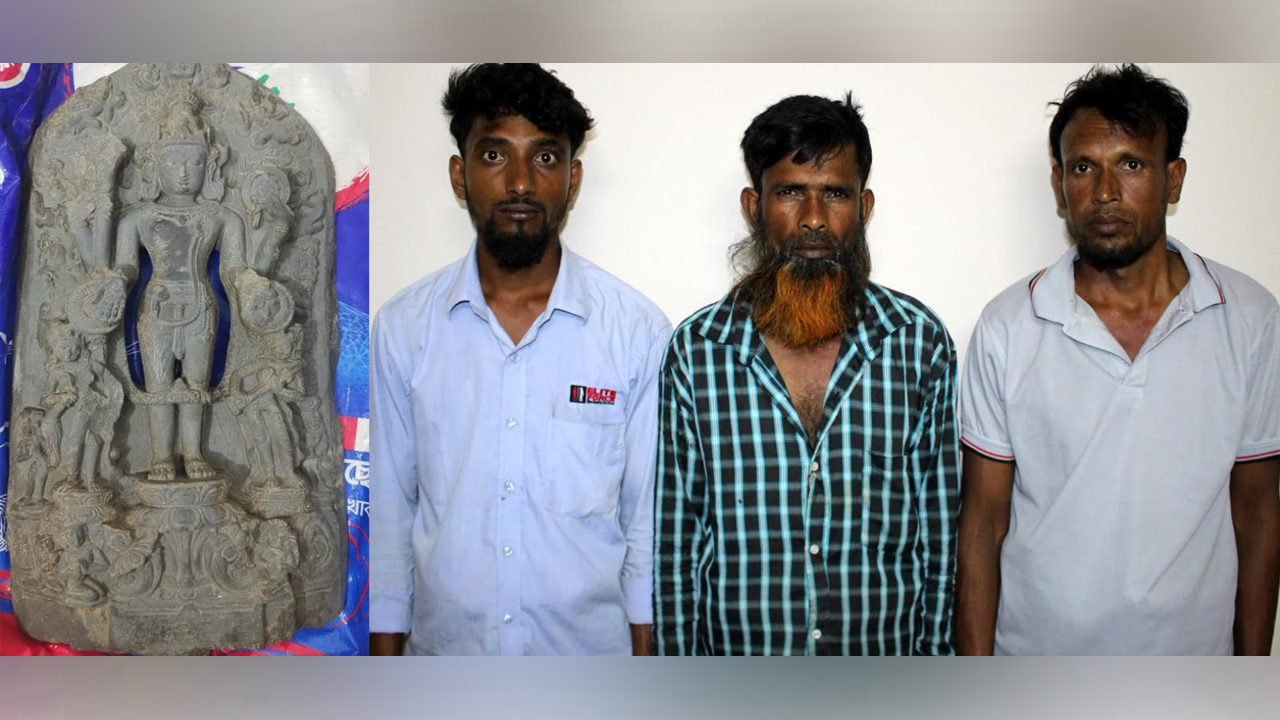 লুকিয়ে রাখা ২৯ কেজি ওজনের বিষ্ণুমূর্তি উদ্ধার, গ্রেপ্তার ৩
