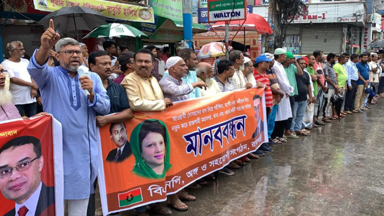 আওয়ামী দোসরদের বাদ দিয়ে রাজশাহী নগর, থানা ও ওয়ার্ড বিএনপির কমিটিগুলো পুনর্গঠনের দাবিতে মানববন্ধন কর্মসূচি পালন করেছেন দলটির একাংশের নেতারা।